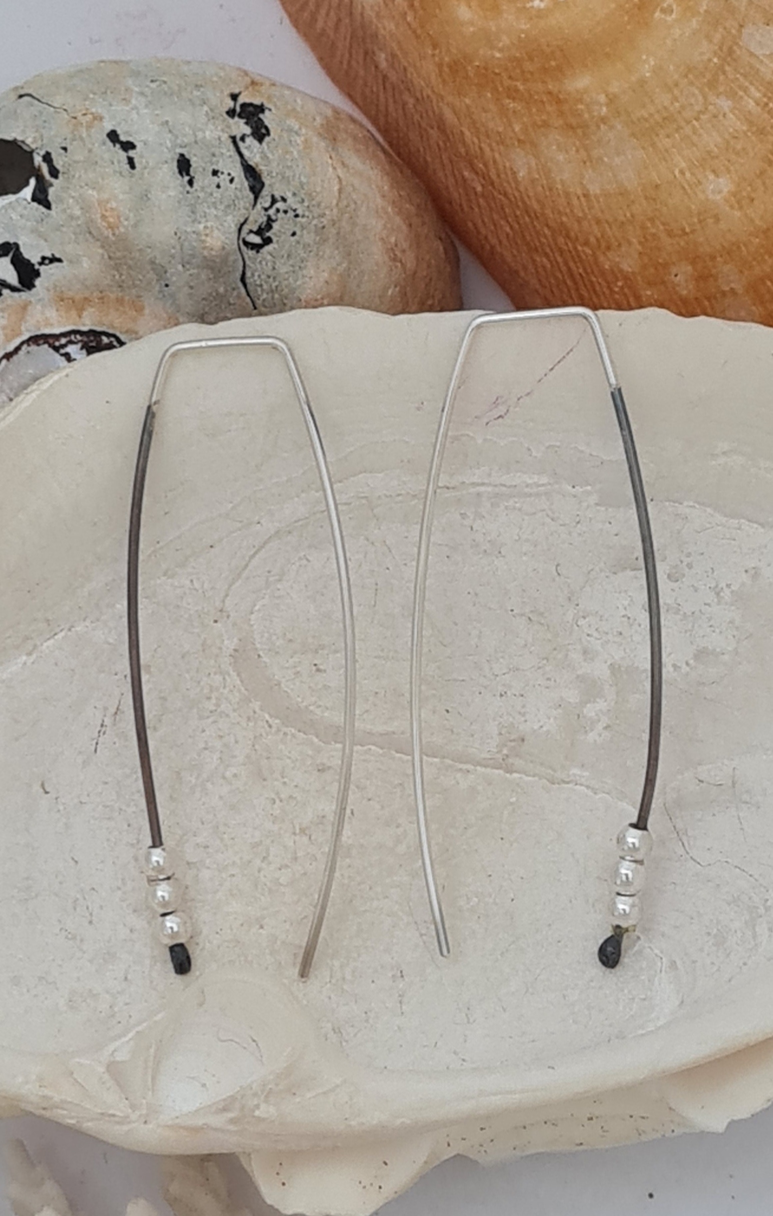 Long polished and oxidised Silver Earrings with silver balls Length approx 60mm Light and comfortable